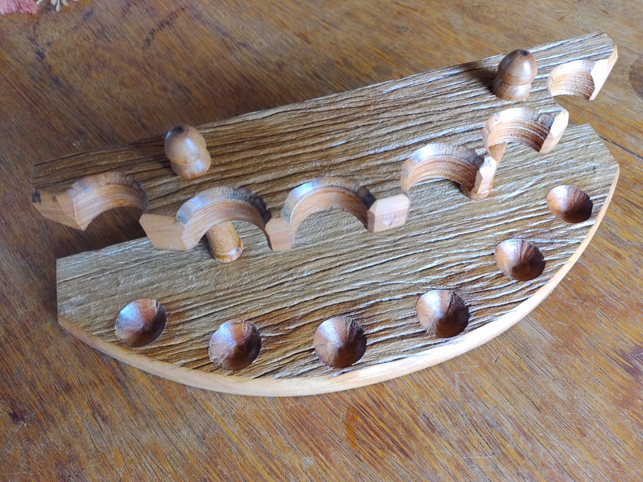 Suporte confeccionado em peroba de demolição, aspecto rústico pelo envelhecimento natural na madeira ao longo de anos.