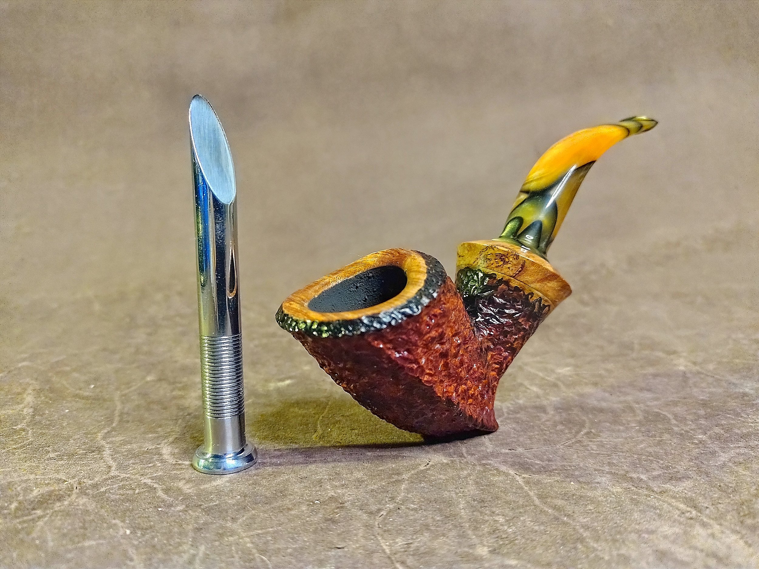 Esse ferramenta indispensável é usada para acomodar e compactar o tabaco dentro da câmara, sua extremidade posta serve como raspador de excesso de resíduos da parede interna do fornilho.
